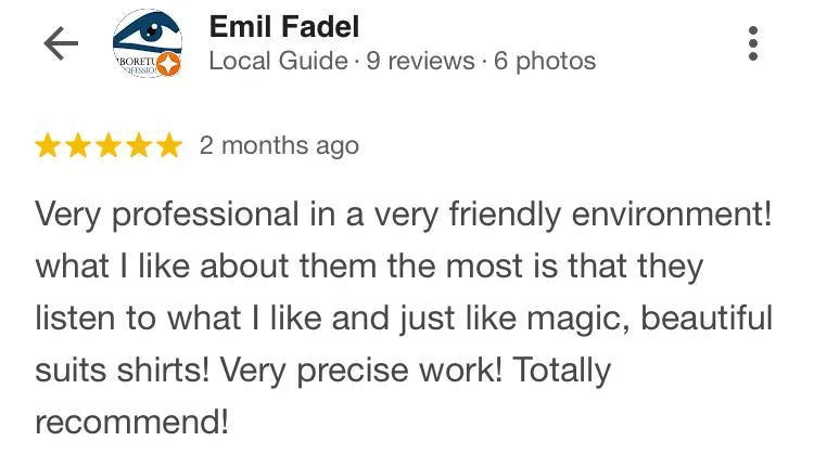 I had such a great experience with. She came directly to my house, which made everything so convenient. She’s professional, friendly, and truly knows her craft. The quality of the tailoring was amazing, my clothes fit perfectly.